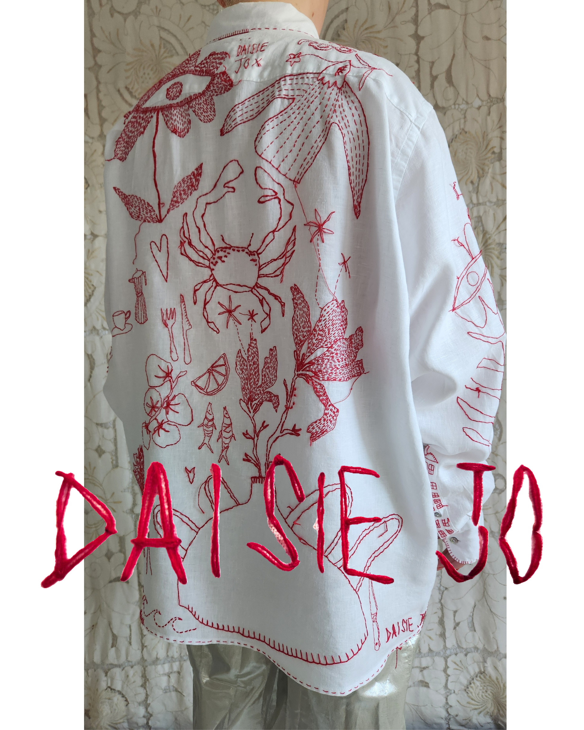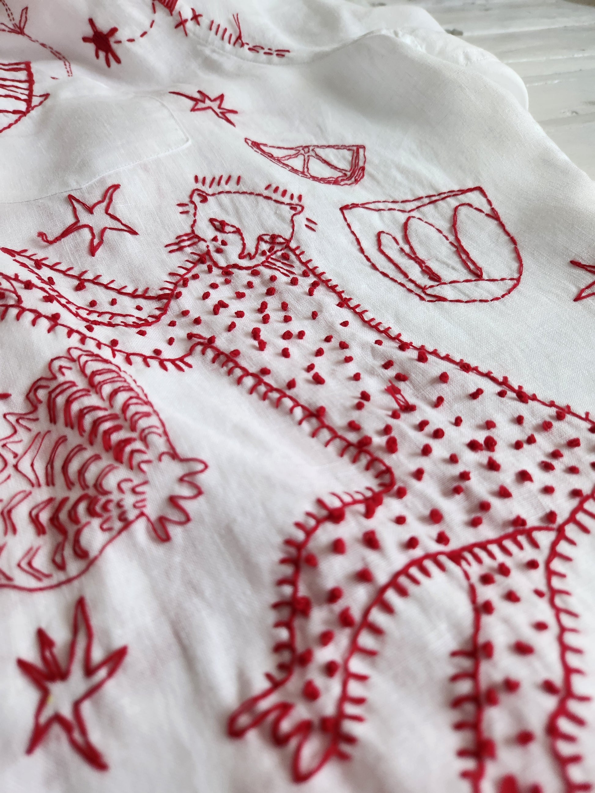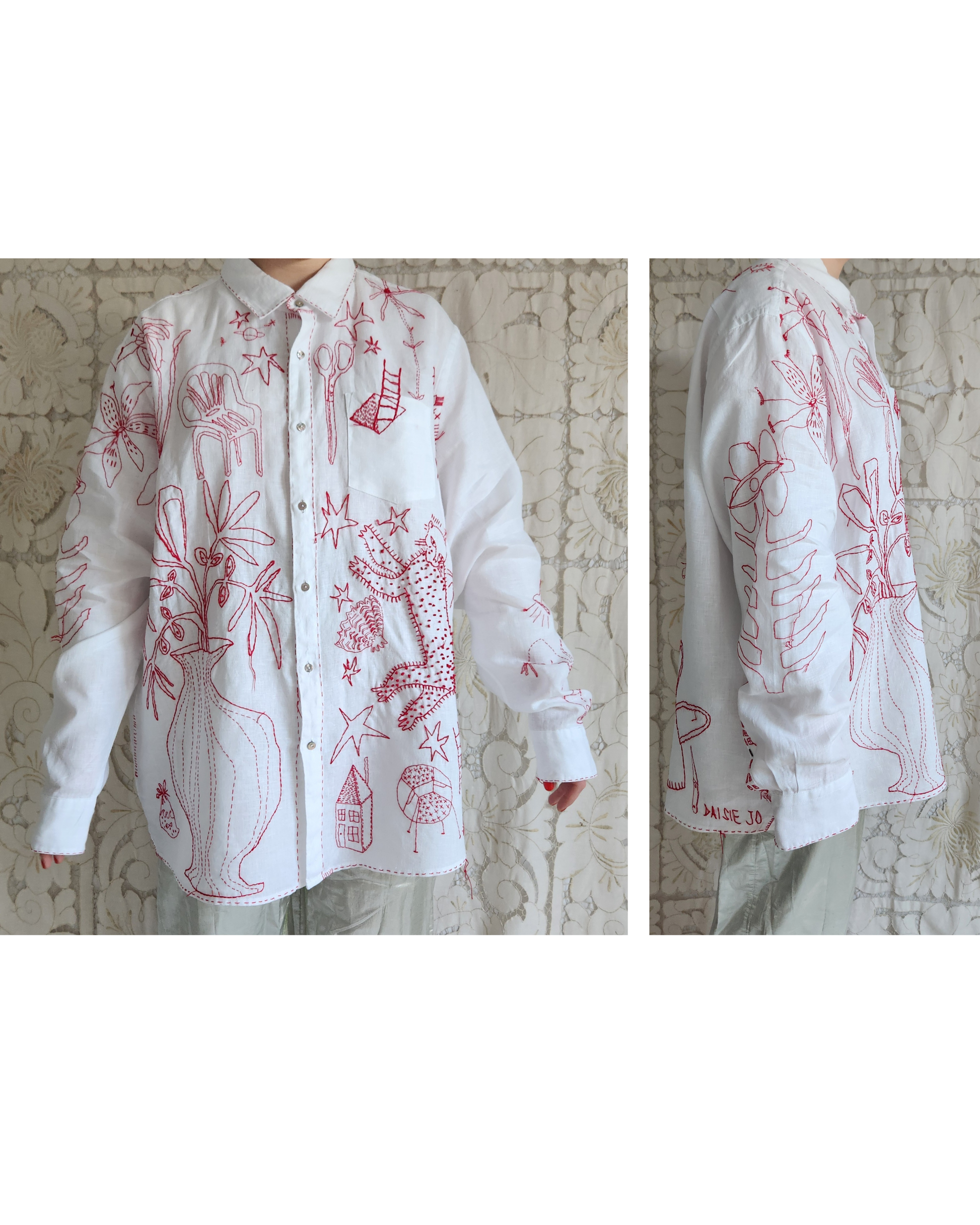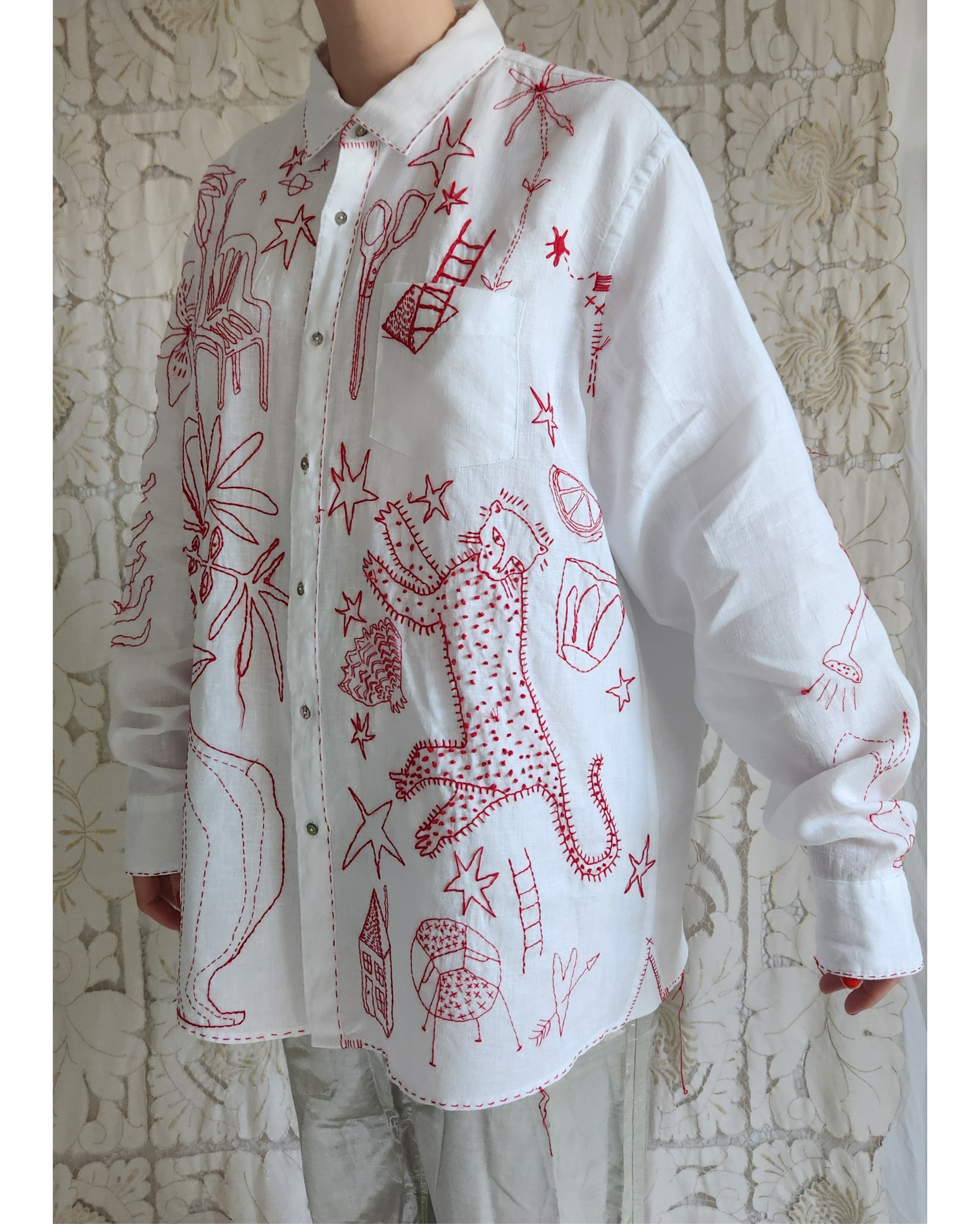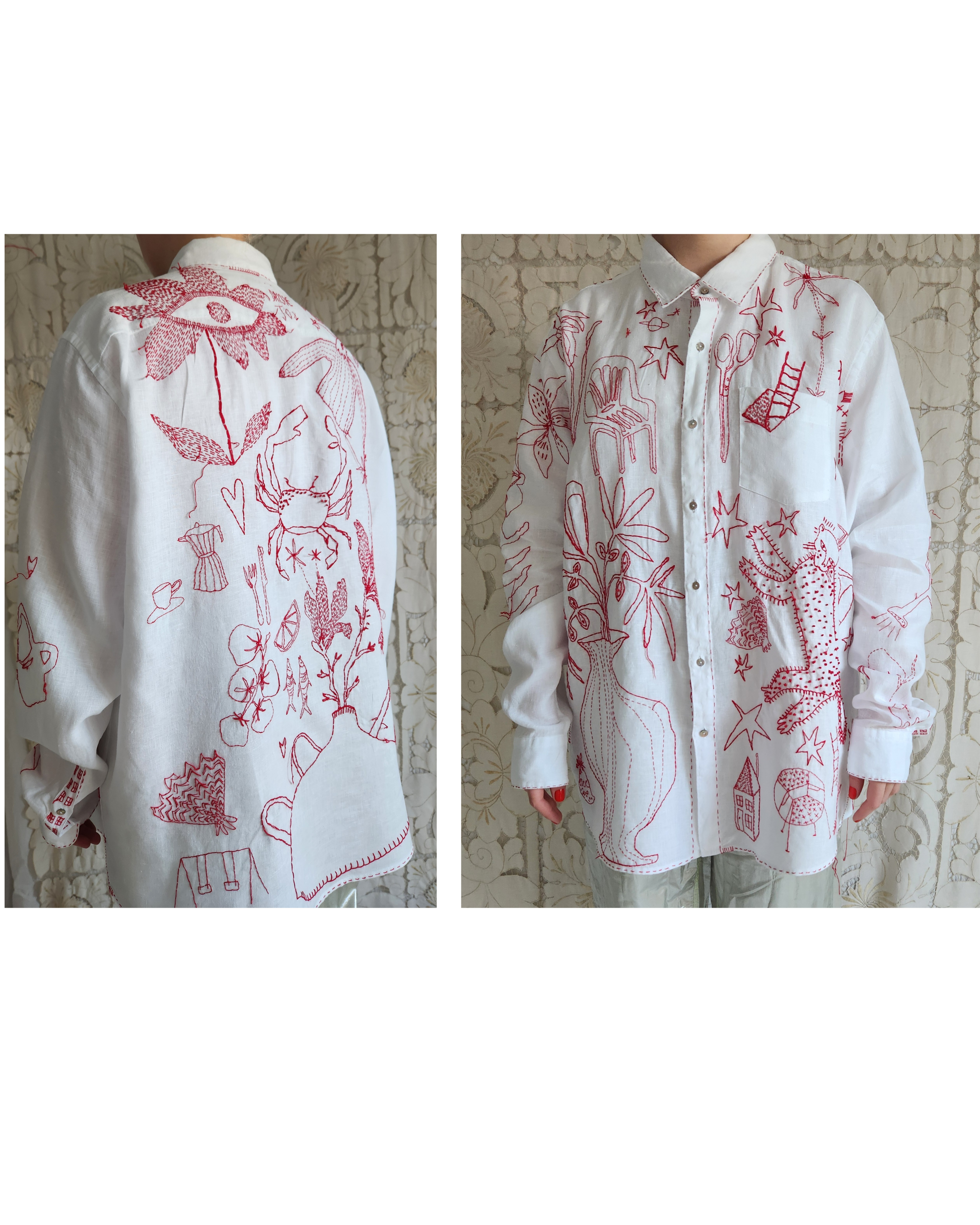 Hand embroidered linen shirt with cotton. Once-off piece. Classic Shirt Cut.