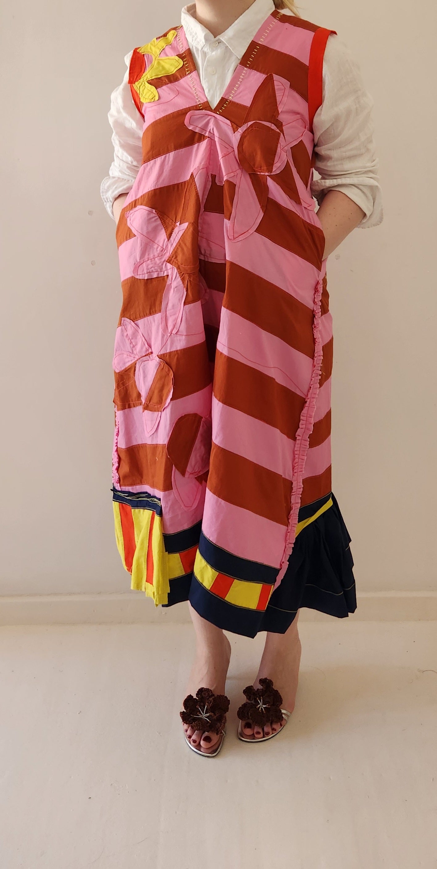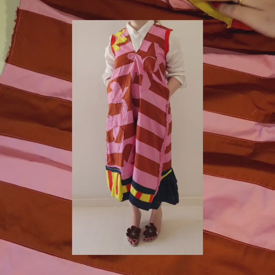 Patched cotton pinafore.
